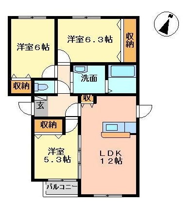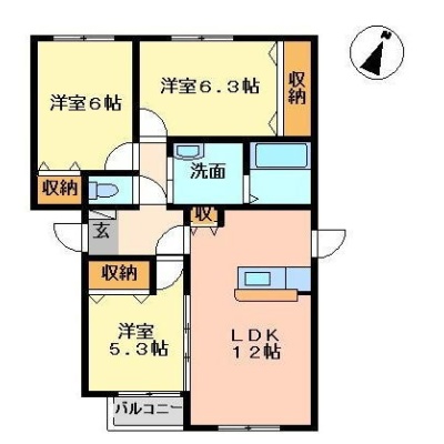 3LDK(68.1m²)└ LDK12帖 洋室6.3帖 洋室6帖 洋室5.3帖