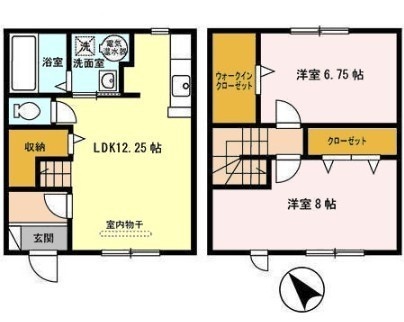 2LDK(70.96m²)└ 1階:LDK12.25帖 / 2階:洋室8帖 洋室6.75帖