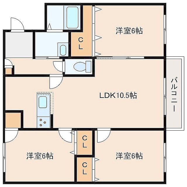 3LDK(55.32m²)└ LD10.5帖 K3.5帖 洋室6帖 洋室6帖 洋室6帖