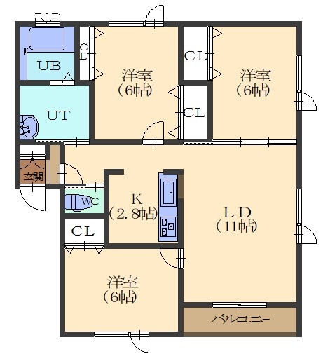 3LDK(76.39m²)└ LDK13.8帖 洋室6帖 洋室6帖 洋室6帖