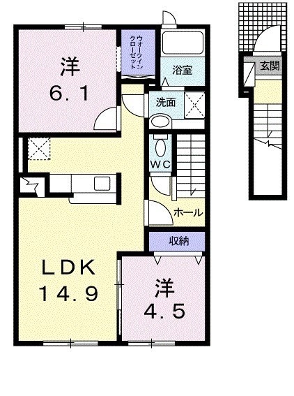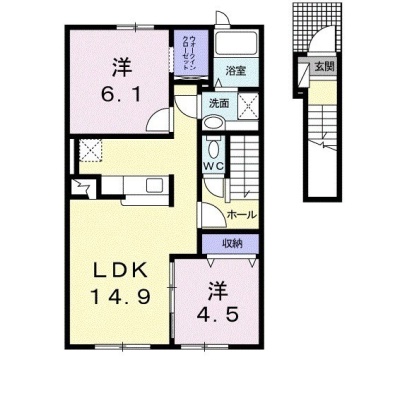 2LDK(60.34m²)└ LDK14.9帖 洋室6.1帖 洋室4.5帖