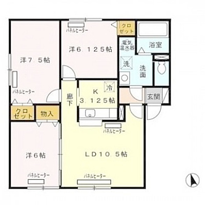 3LDK(73.35m²)└ LD10.5帖 K3.1帖 洋室7.5帖 洋室6.1帖 洋室6帖