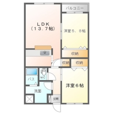 3LDK(57.19m²)└ LDK13.7帖 洋室6帖 洋室5.8帖