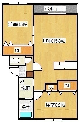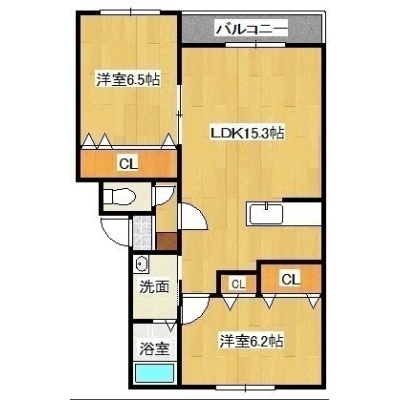 2LDK(65.46m²)└ LDK15.3帖 洋室6.5帖 洋室6.2帖