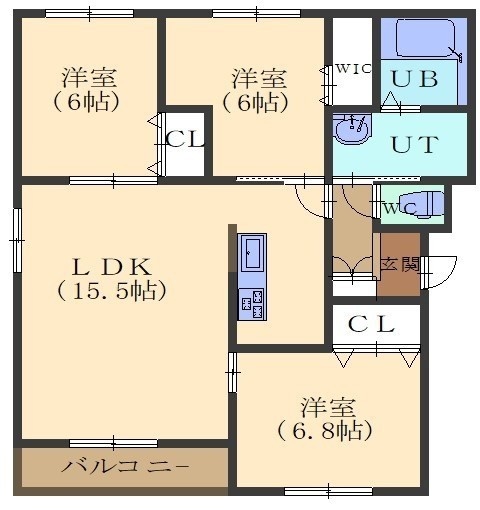 3LDK(76.2m²)└ LD12.5帖 K3帖 洋室6.8帖 洋室6帖 洋室6帖