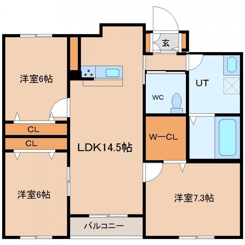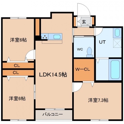 3LDK(77.84m²)└ LDK14.5帖 洋室7.3帖 洋室6帖 洋室6帖