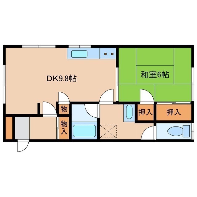 1DK(36.85m²)└ DK9.8帖 和室6帖