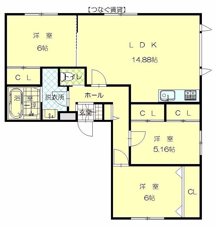 3LDK(78.08m²)└ LDK14.8帖 洋室6帖 洋室6帖 洋室5.1帖