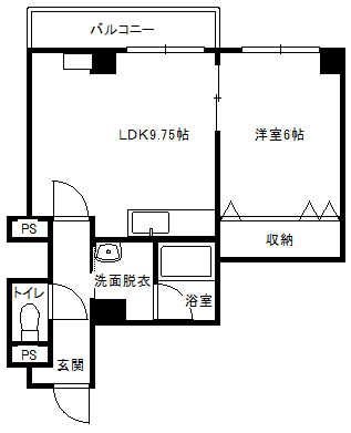 1LDK(42.5m²)└ 3階:LDK9.75帖 洋室6帖