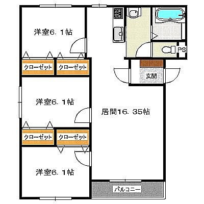 | 間取り | 3LDK 【16.35*6.1*6.1*6.1】 |