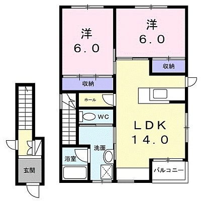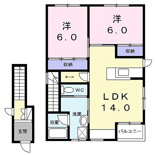 | 間取り | 2LDK 【LDK14帖 洋室6帖 洋室6帖】 |