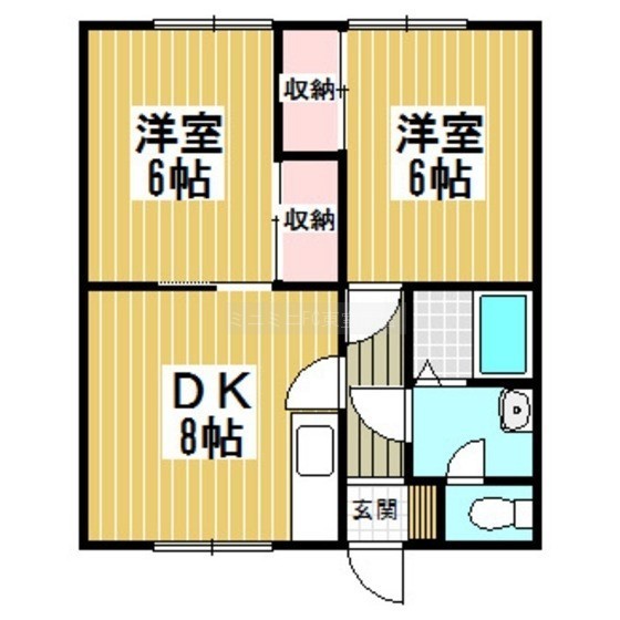 2DK(46.37m²)└ DK8/洋室6/和室6