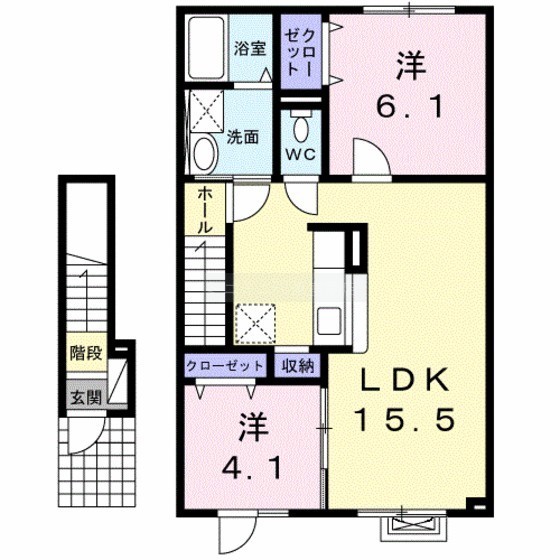 2LDK(58.87m²)└ LDK15.5/洋室6.1/洋室4.1