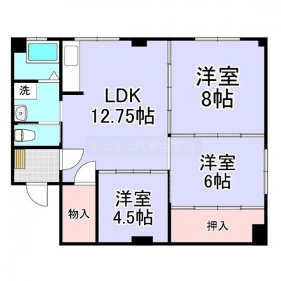 3LDK(69.76m²)└ LDK12.75/洋室8/洋室6/洋室4.5
