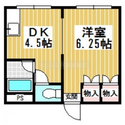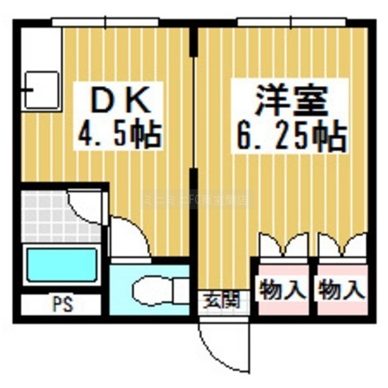 ワンルーム(24.66m²)└ 洋室6.25/洋室4.5