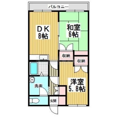 2DK(46.5m²)└ DK8/和室6/洋室5.8