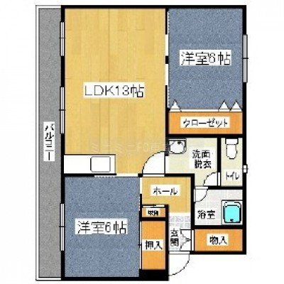 2LDK(53.4m²)└ LDK13/洋室6/洋室6