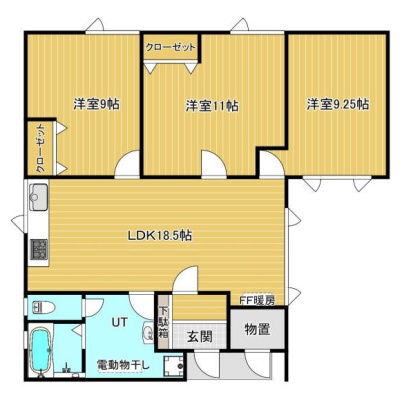 3LDK(84.24m²)└ LDK18.5帖 洋室11帖 洋室9.25帖 洋室9帖