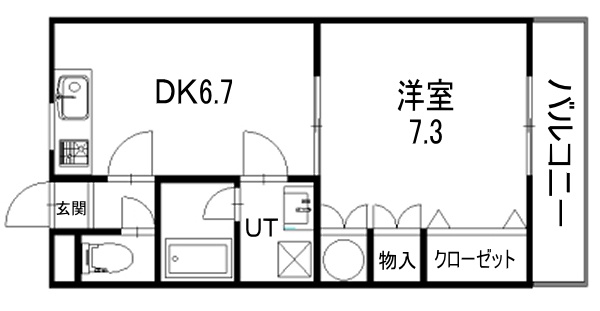 1DK(33.44m²)└ DK6.7帖 洋室7.3帖