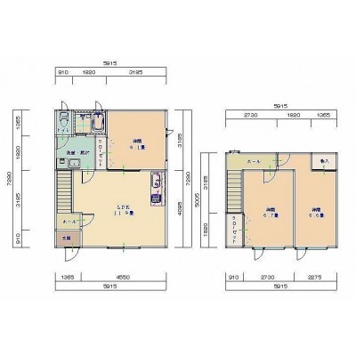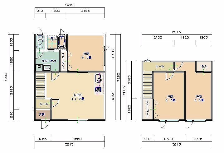 3LDK(72.66m²)└ 1階:LDK11.9帖 洋室6.1帖 / 2階:洋室6.7帖 洋室6.6帖