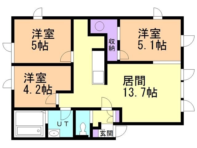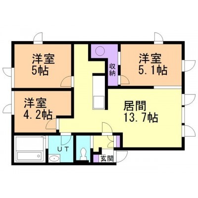 3LDK(59.88m²)└ LDK13.6帖 洋室5帖 洋室5帖 洋室4.1帖