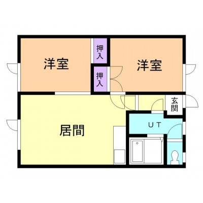 2LDK(43.74m²)└ LDK12帖 洋室6帖 洋室6帖
