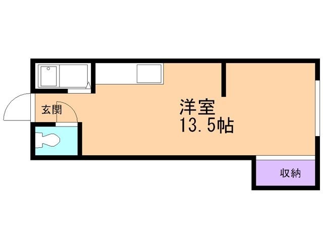 ワンルーム(22.35m²)└ 洋室13.5帖