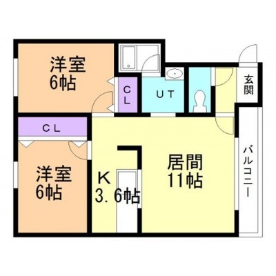2LDK(47.95m²)└ 洋室6帖 洋室6帖 LD11帖 K3.5帖