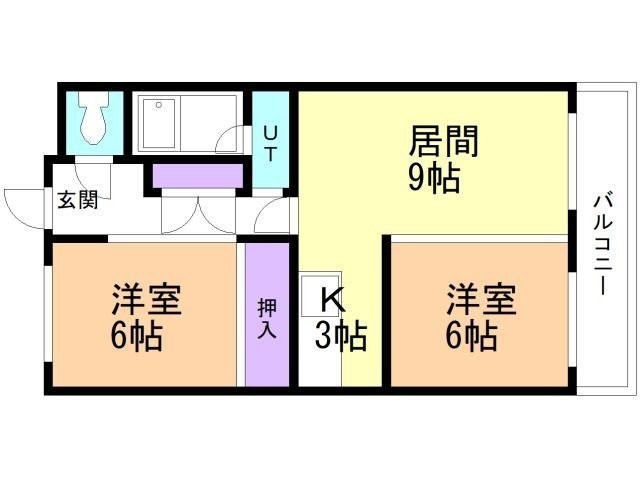 2LDK(55m²)└ LD9帖 K3帖 洋室6帖 洋室6帖
