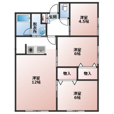 3LDK(59.62m²)└ LDK12帖 洋室6帖 洋室6帖 洋室4.5帖