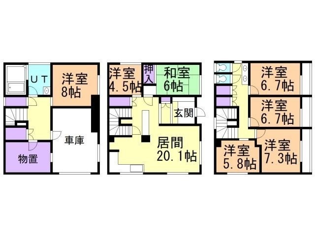 7DK以上(196.31m²)└ 洋室8帖 LDK20.1帖 洋室4.5帖 和室6帖 洋室5.8帖 洋室7.3帖 洋室6.7帖 洋室6.7帖