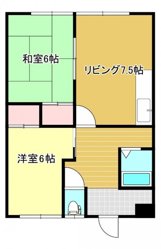 2DK(47.07m²)└ DK7.5帖 洋室6帖 和室6帖