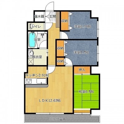 3LDK└ LDK15.54帖 洋室6.34帖 洋室5.7帖 和室6.5帖