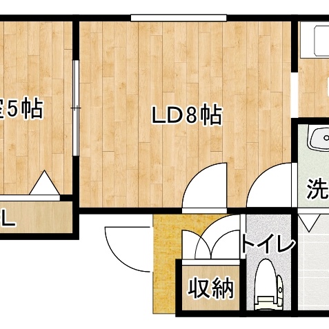 1LDK(33.61m²)└ 1階:LD8帖 K2帖 洋室5帖