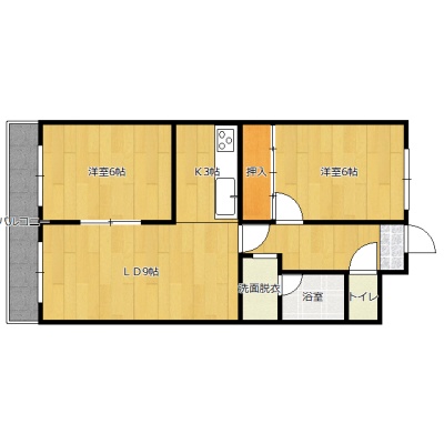 2LDK(55m²)└ 1階:LD9帖 K3帖 洋室6帖 洋室6帖