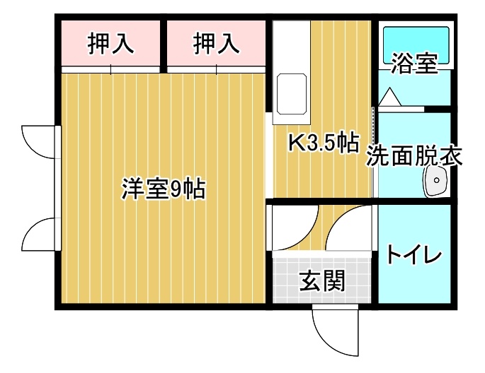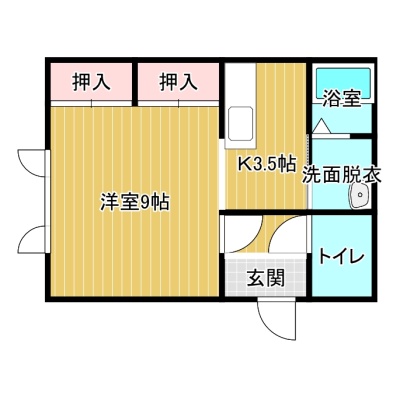 1K(34.16m²)└ 1階:洋室9帖 K3.5帖