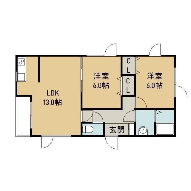 2LDK(58.8m²)└ 1階:LDK13帖 洋室6帖 洋室6帖