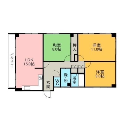 3LDK(95.28m²)└ LDK15×洋11×洋9×和8