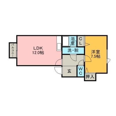 1LDK(46.57m²)└ LDK12×洋7.5