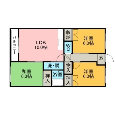 3LDK(65.52m²)└ LDK10×和6×洋6×洋6