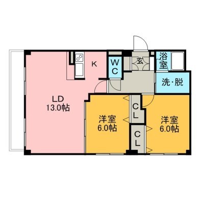 2LDK(63.37m²)└ LDK13×洋6×洋6