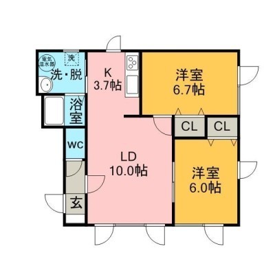 2LDK(57.55m²)└ LD10×K3.7×洋6.7×洋6