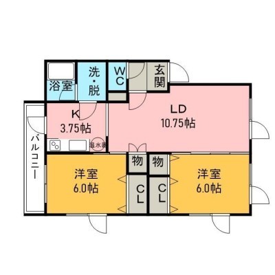 2LDK(56.79m²)└ LD10.7×K3.7×洋6×洋6