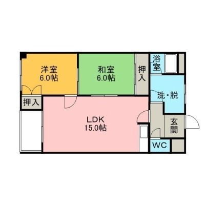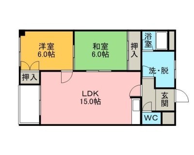 2LDK(60.4m²)└ LDK15×和6×洋6