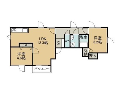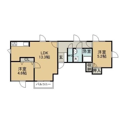 2LDK(55.1m²)└ LDK13.3×洋4.6×洋5.2