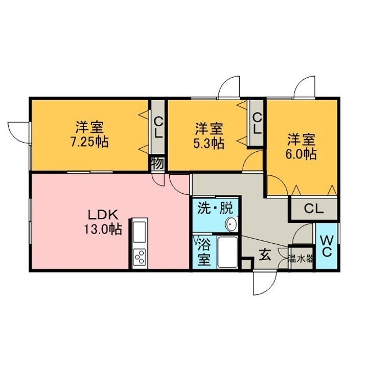 3LDK(72.45m²)└ 1階:LDK13帖 洋室7.25帖 洋室5.3帖 洋室6帖