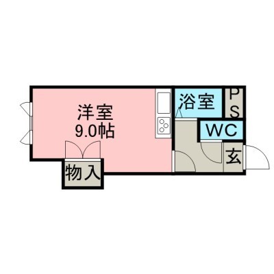 ワンルーム(25.39m²)└ 洋9.5