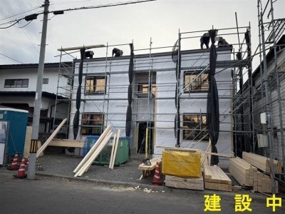 ここに注目!R8年3月中旬頃に完成予定の1LDK新築アパートです☆ 駐車場1台無料です!冷暖房エアコン、HIキッチン、宅配BOX、物置、リビングにカウンター設備完備!