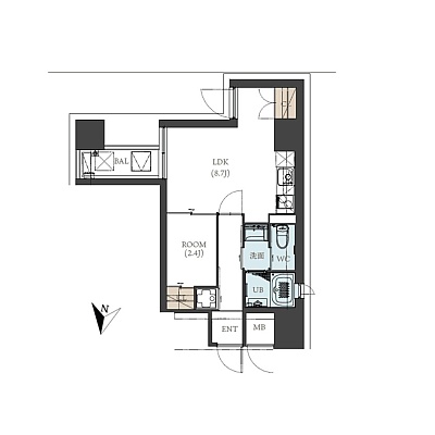 1LDK(35.5m²)└ LDK8.7帖 洋室2.4帖