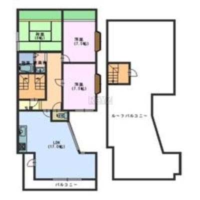 所在階/建物の階建 3階 / 地上3階建 主要採光面 構造 鉄筋コンクリート(RC)造 間取り バルコニー あり- ルーフバルコニー